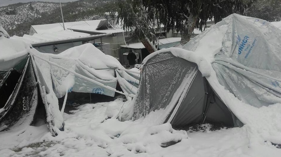 Στη Λέσβο τέλος, δύο θερμαινόμενες μεγάλες σκηνές έχουν στηθεί στη Μόρια για να αυξηθούν οι ζεστοί χώροι.